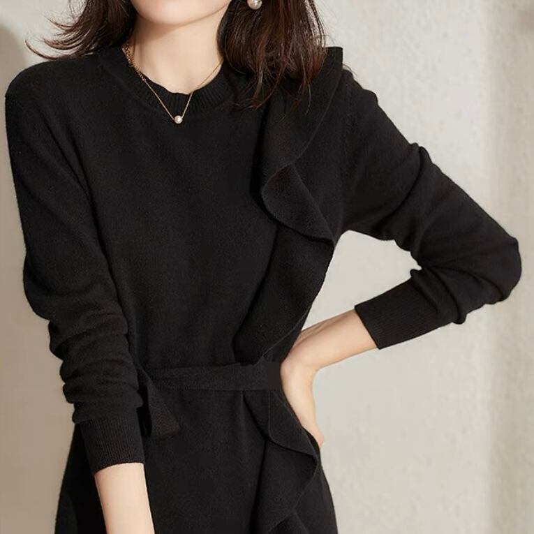 フェミニンなフリルデザインと上品なニット素材が魅力。