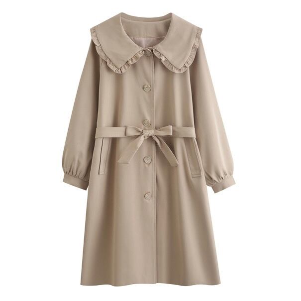 フリル付きの大きな襟が可愛いコート。トレンド感溢れるデザインで、女性らしさを引き立てます。カジュアルな服装にも、きれいめなコーディネートにもマッチします。さらに、着るだけで周りからの注目を集めること間違いなしです。おしゃれに敏感な方にぴったりのアイテムです。ベルト付き。