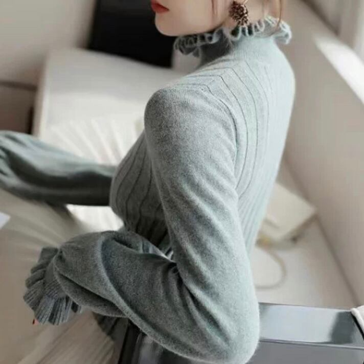 上品な雰囲気漂うフリル襟セーター。フェミニンなデザインと落ち着いた色使いが、あなたのスタイリングを一気にグレードアップさせます。柔らかな素材で肌触りも心地よく、快適な着心地を提供します。様々なコーディネートが楽しめる一着です。