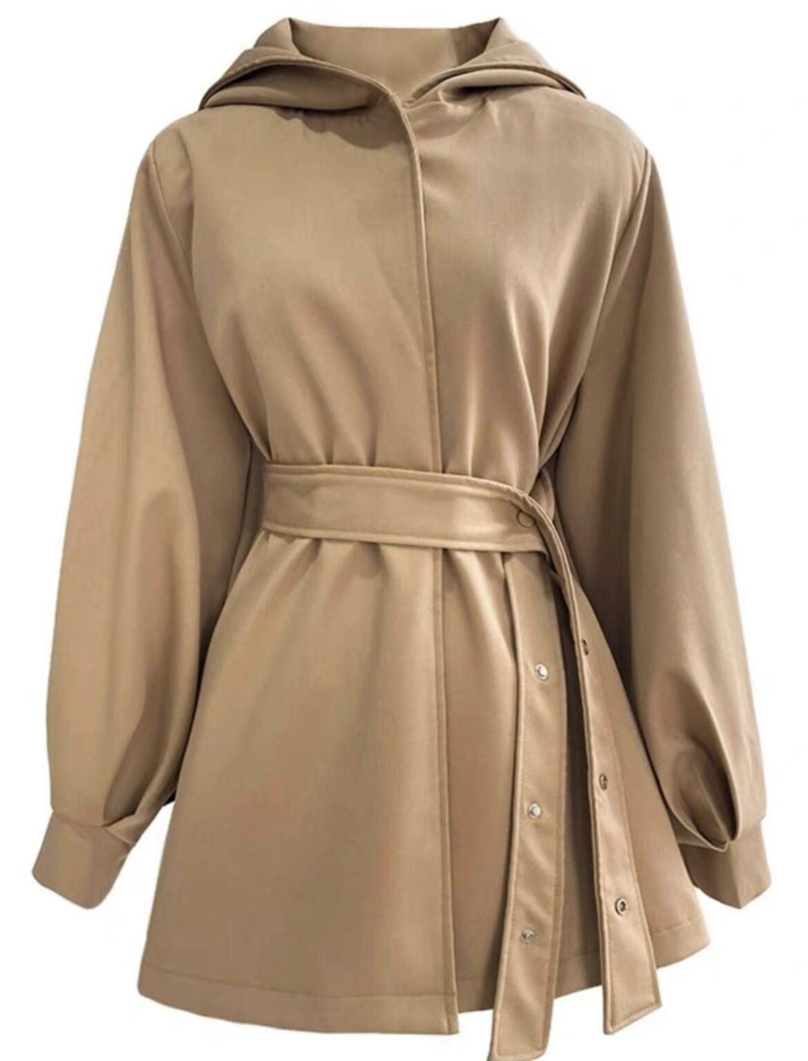 フード付きランタンスリーブコートは、おしゃれなデザインと機能性を兼ね備えたアイテムです。トレンドのランタンスリーブが、女性らしさを引き立てます。フードもついているので、お天気の変化にも対応できます。
