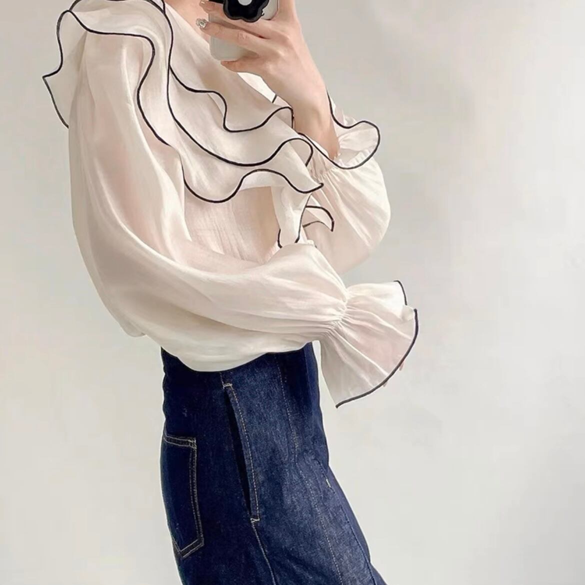 フリルトランペットスリーブブラウス T053