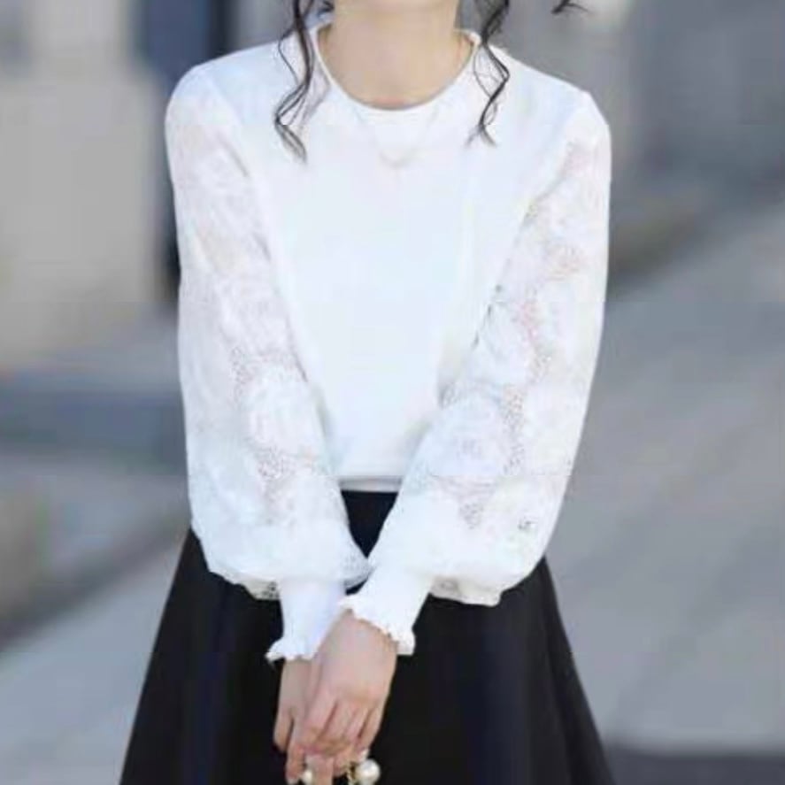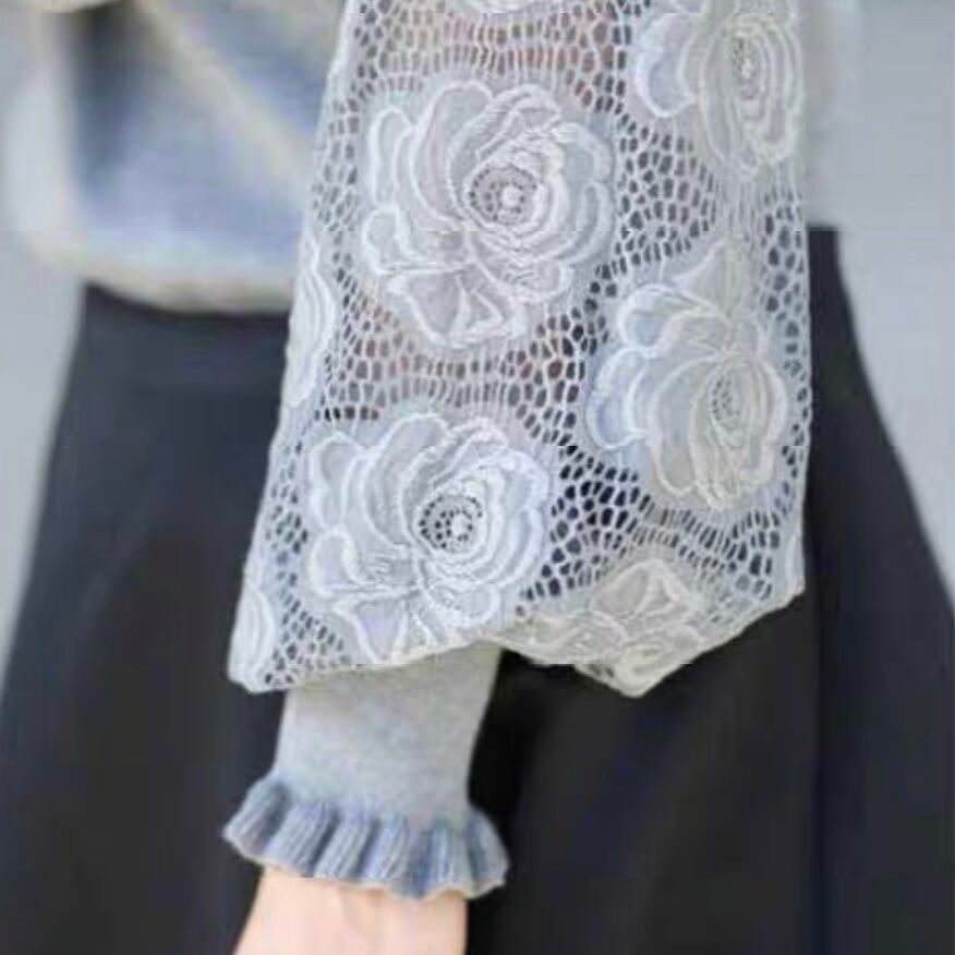 花模様ランタンスリーブフリルニット T055