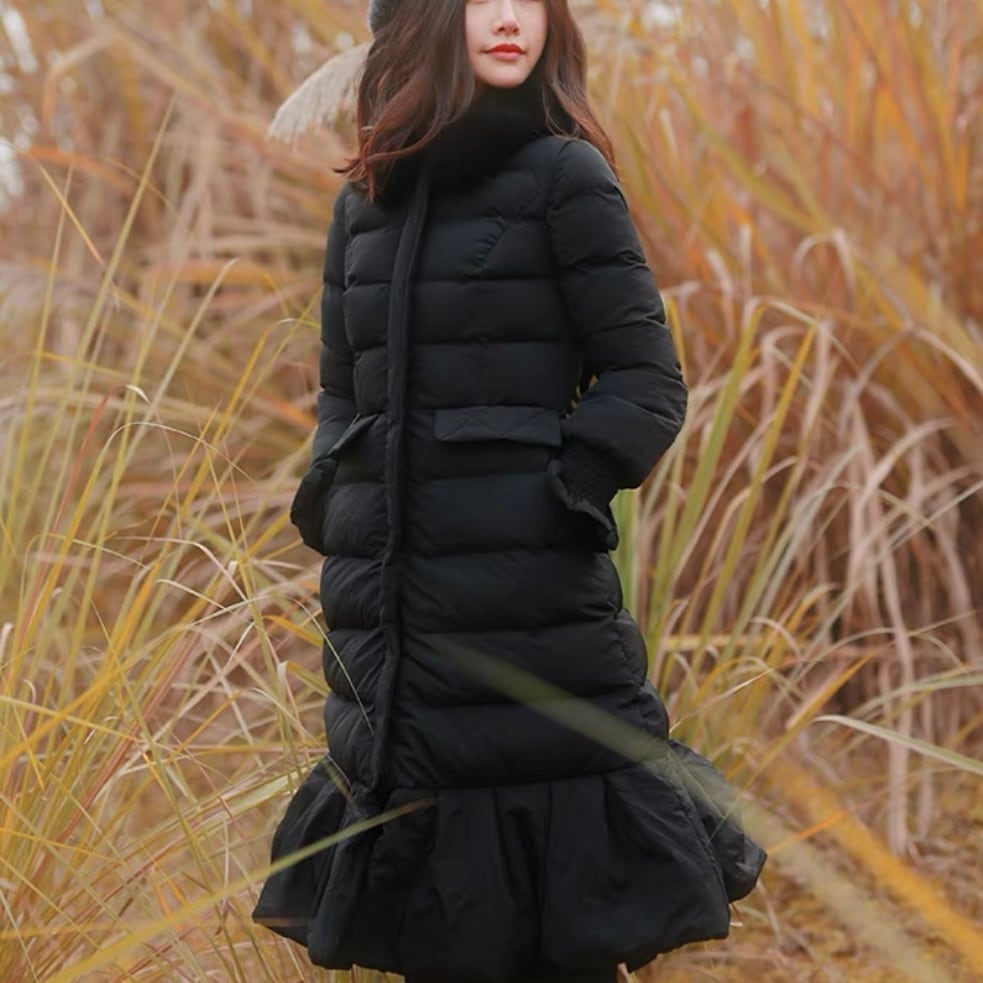 女性らしさを引き立てるデザインが魅力的なアウターアイテムです。フリルのディテールが、甘さとエレガンスを両立させ、コーディネートに華やかさをプラスします。キルティング素材が保温性に優れており、寒い季節でも暖かさをキープします。さらに、ロング丈のデザインで、体をしっかりと包み込み、冷たい風からも守ってくれます。これからの季節にぴったりの一着ですので、是非お試しください。