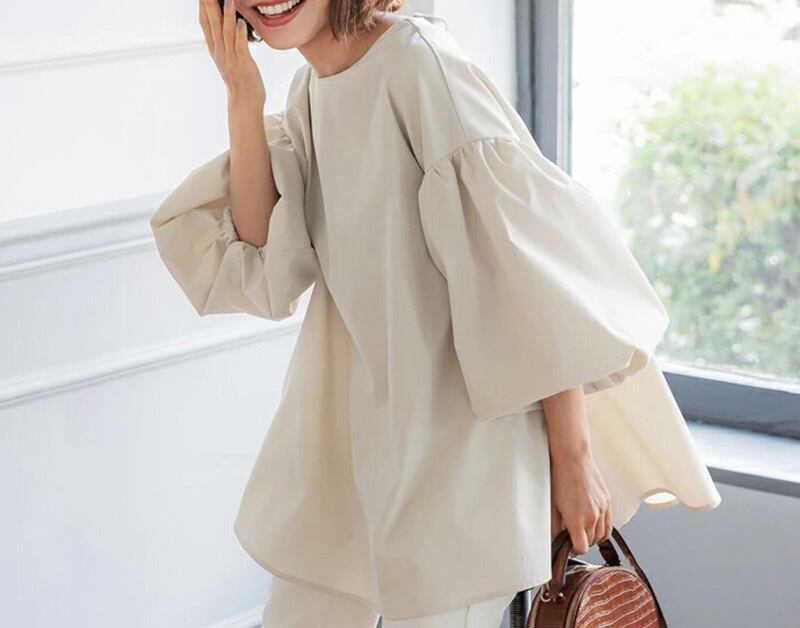 ぽわん袖のボリューミーなブラウス。程よい丈感で、どんなボトムスとも相性抜群。立体的なバルーンスリーブはベストにもぴったり。長く着まわせる一枚です。