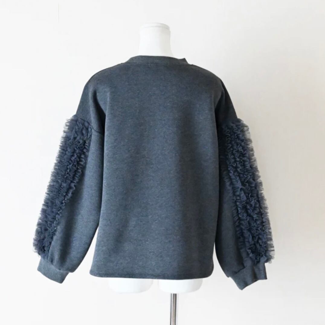 華やかで上品な雰囲気漂うフリル袖。フェミニンなデザインと落ち着いた色使いが、あなたのスタイリングを一気にグレードアップさせます。柔らかな素材で肌触りも心地よく、裏起毛の素材は肌寒い日も快適に過ごすことができます。