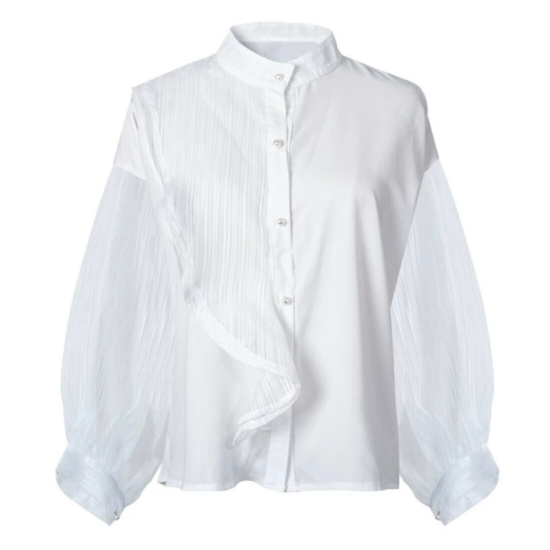 サラサラとしたハリ感のある素材。カジュアルにもきれいめにも使える袖コンシャスな一着です。ボリューミーなトップスは華奢見え効果もあり魅力的なアイテムです。