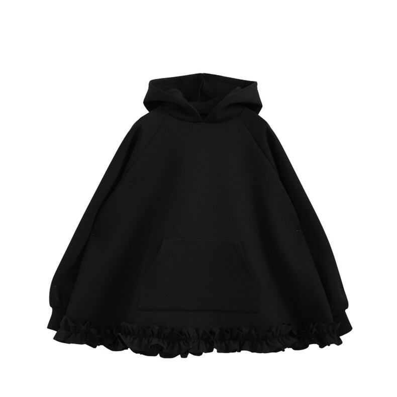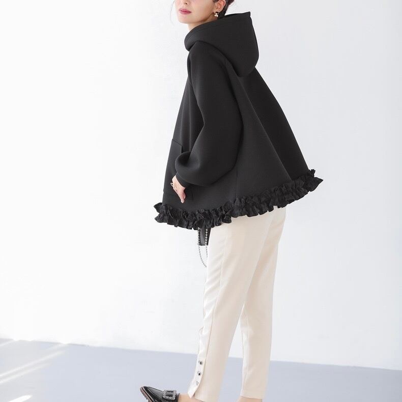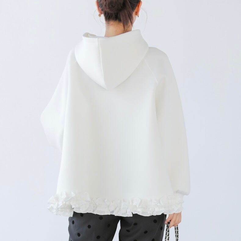 トレンド感のあるチュールフリルをあしらった、カジュアルフェミニンなパーカー。