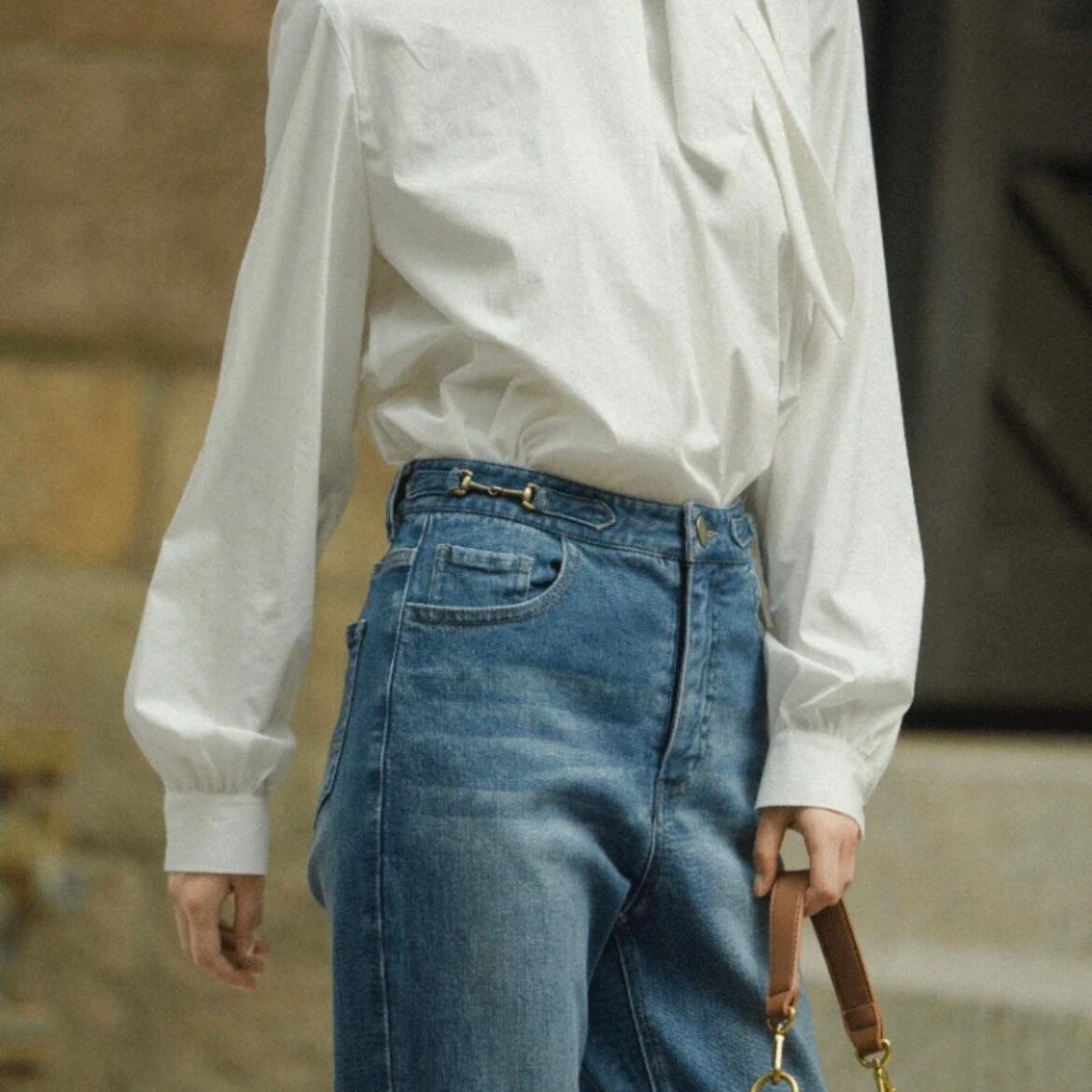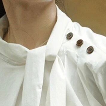 ネクタイ風スカーフがこなれた雰囲気を醸し出す長袖シャツ。パンツスタイルやジャケットのインナーにオフィシャルに着こなせるアイテムです。