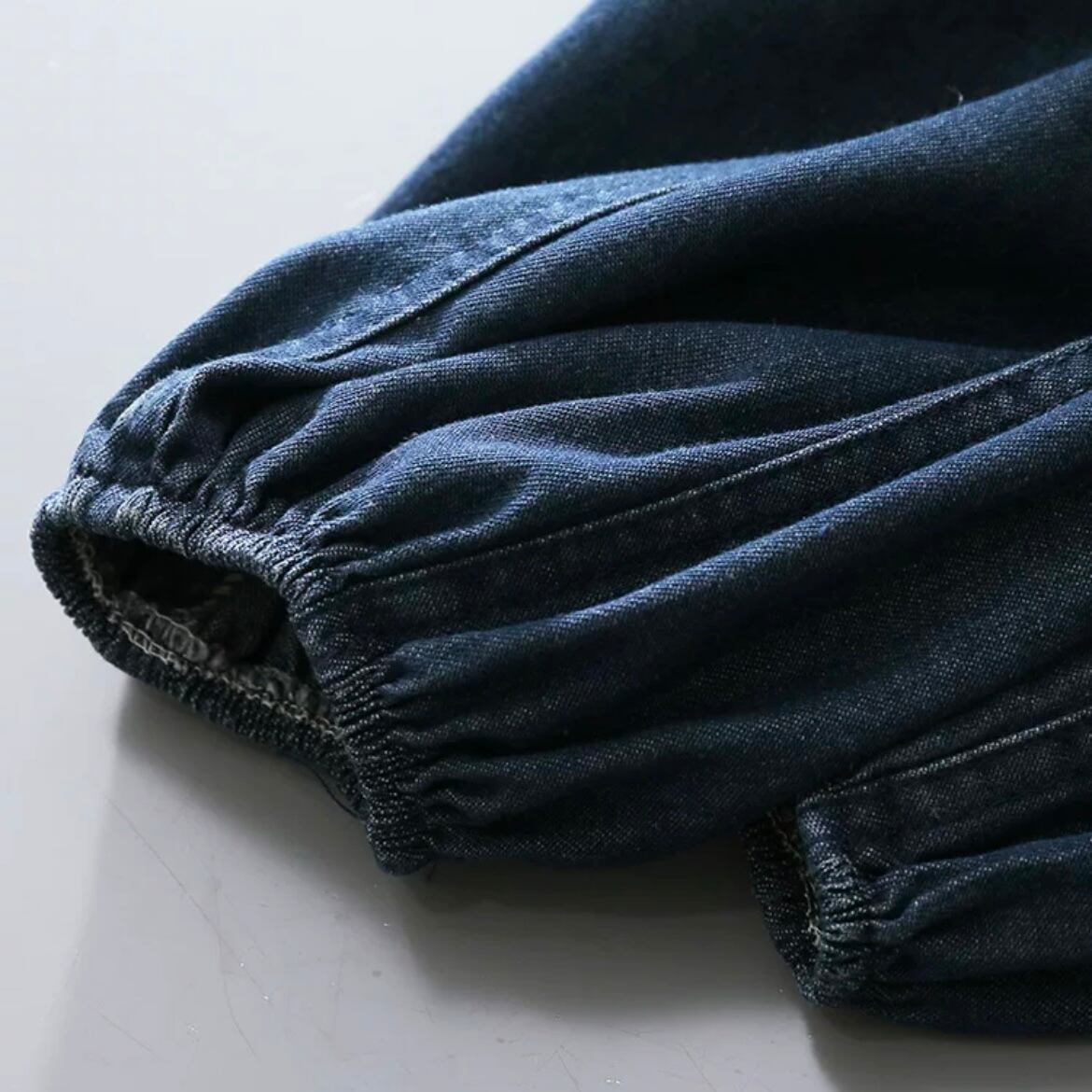 着脱可能なリボンタイ仕様のデニムシャツ。リボンをボタンホールに止める仕様なのでリボン無しでシンプルに着ることもできます。さっと着るだけで華やかな印象に。ゴム付きの袖口は、ぽわん袖になるのもうれしいポイント。オシャレだけではなく実用性も兼ねる優秀ブラウスです。