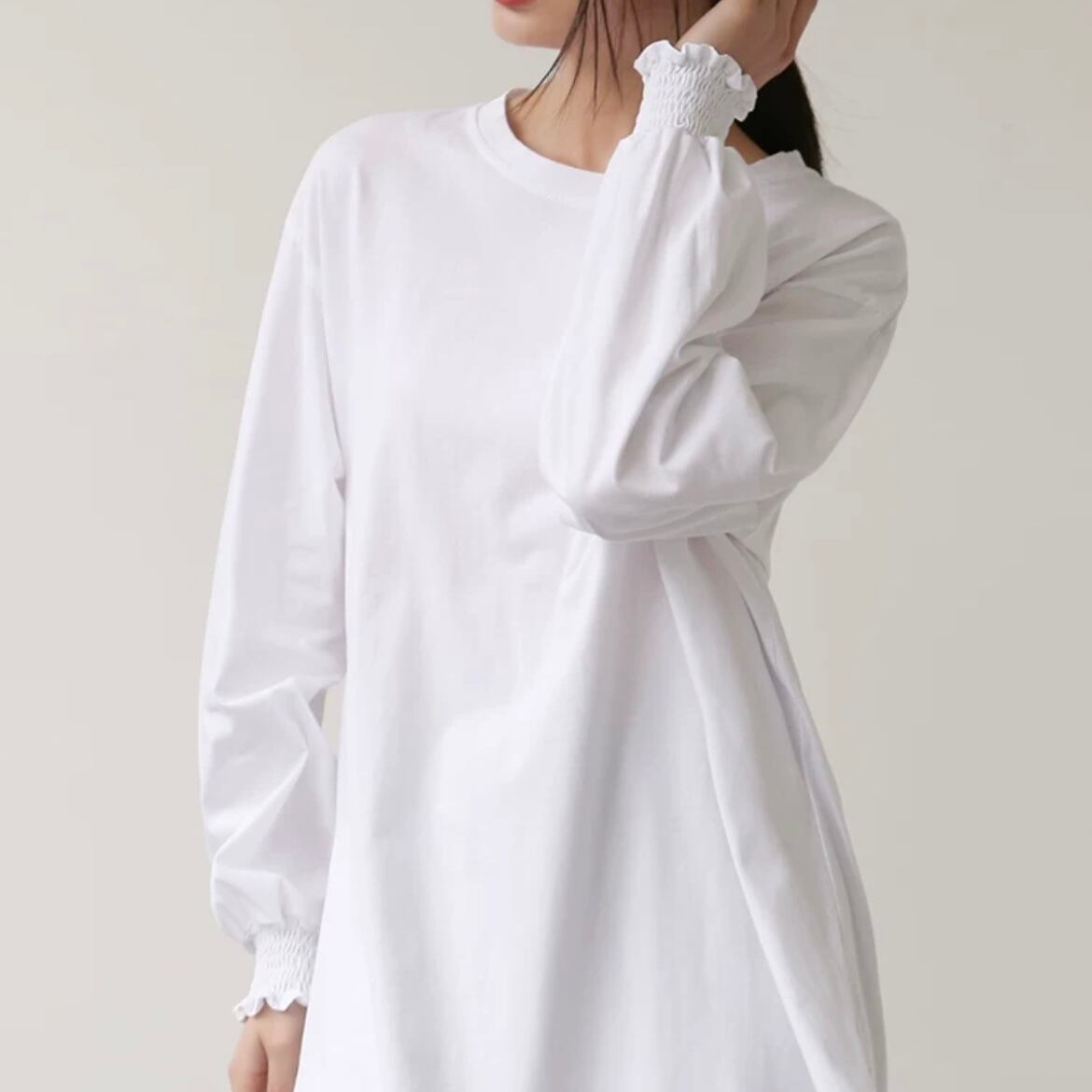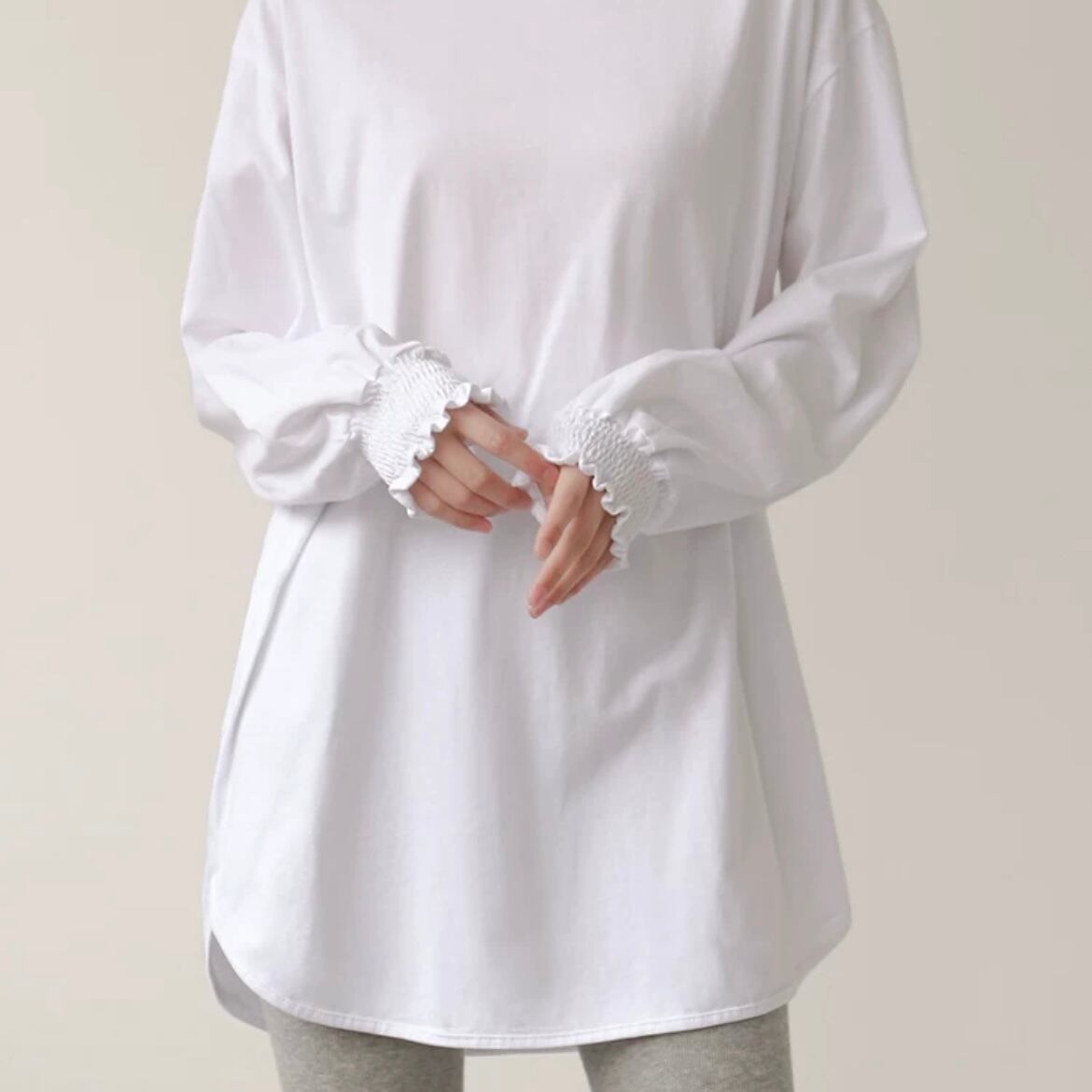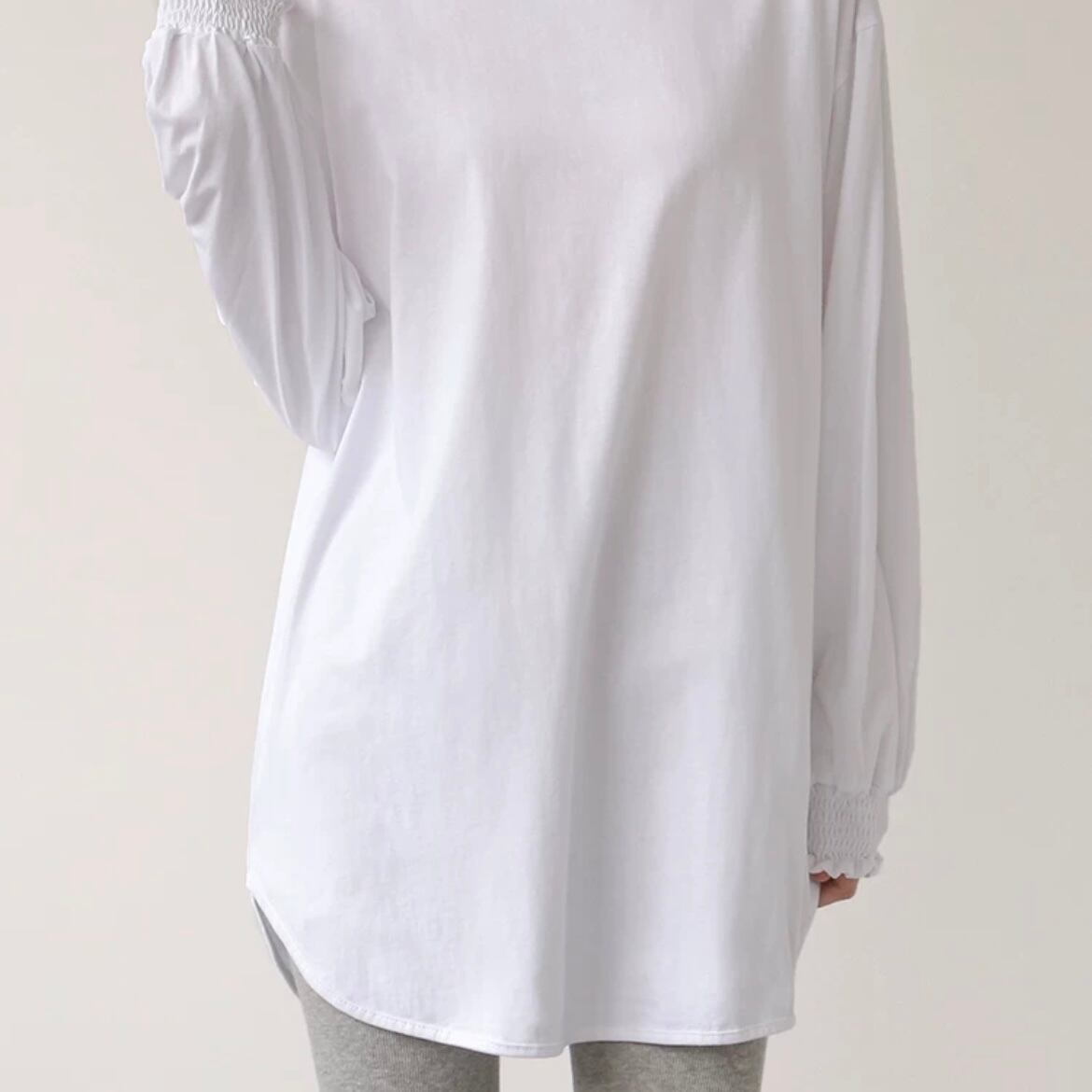 パキッと白い長袖シャツは、レイヤードに欠かせない必須アイテム。綿100%の生地は着心地や通気性に優れ、年中活躍してくれます。袖口のシャーリングは伸縮性があり、おしゃれと実用性を兼ね備えたアイテムです。