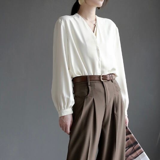 レイヤーカラーVネックブラウス T094